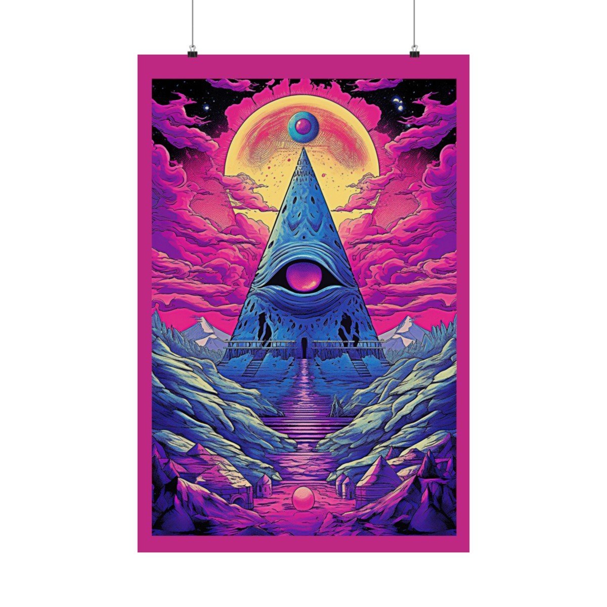 πŸ‘οΈβ€πŸ—¨οΈ Illuminate your space with our mesmerizing “Trippy Eye in the Sky” poster, a stunning fusion of surrealism and cosmic beauty. This visionary artwork beckons you to embark on a transcendent journey through the depths of the universe, guided by intricate patterns and vibrant colors that draw you into the hypnotic gaze of the all-seeing eye. Let the celestial motifs and hypnotic patterns awaken your sense of wonder and cosmic interconnectedness.